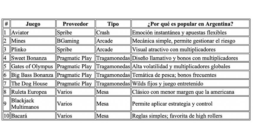- TOP-10 juegos populares en Argentina (2025)