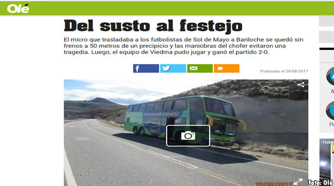 No todo fue color de rosas en el 2017 para Sol De Mayo. Es que el conjunto de Viedma estuvo cerca de una tragedia, cuando en un accidente yendo a Bariloche para un partido frente a Cruz Del Sur por el Federal B, el micro que trasladaba al plantel se quedó sin frenos en plena bajada y por una buena maniobra del chofer no terminó en una desgracia.